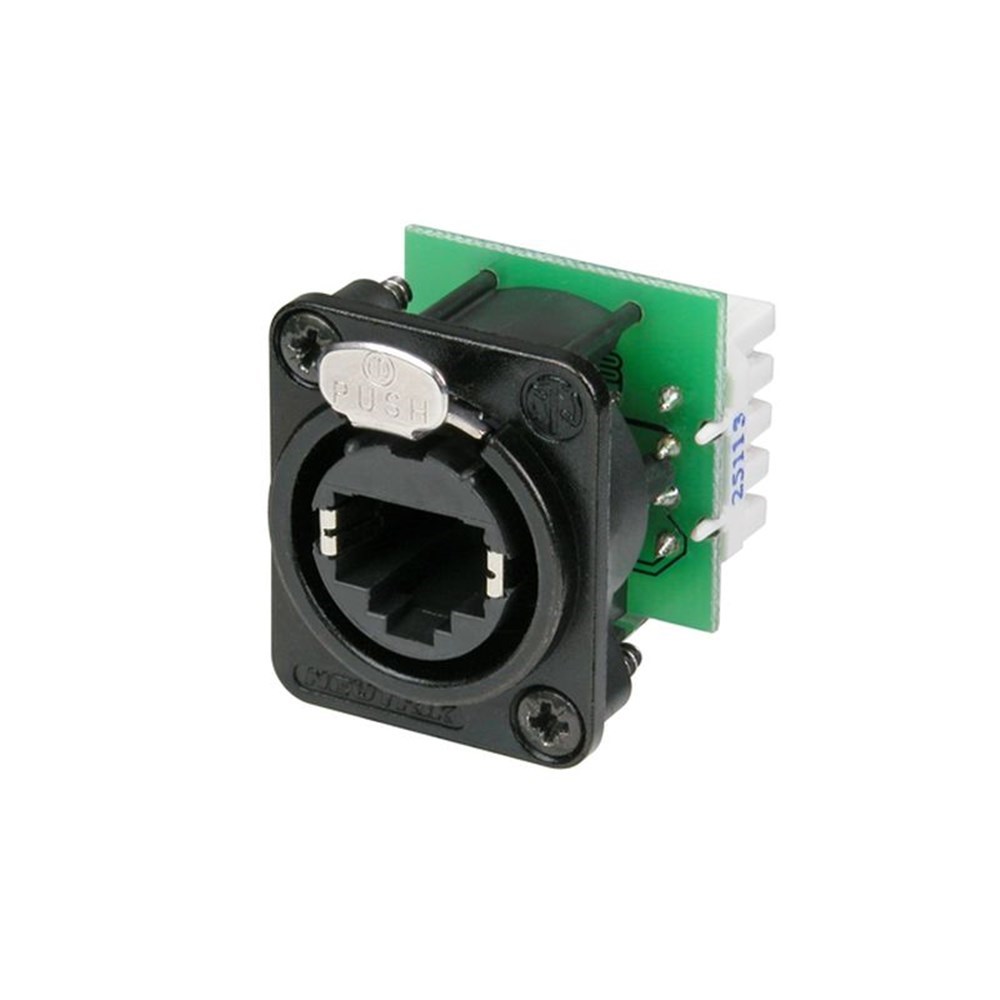 The etherCON Series is a ruggedized and lockable RJ45 connector system, optimized for pro audio, video and lightning network applications. The chassis connectors are shaped to fit into standardized panels out of the entertainment industry.The D-Series offers the most rugged design of the etherCON series and is perfectly suitable for panel mount and the installer market.